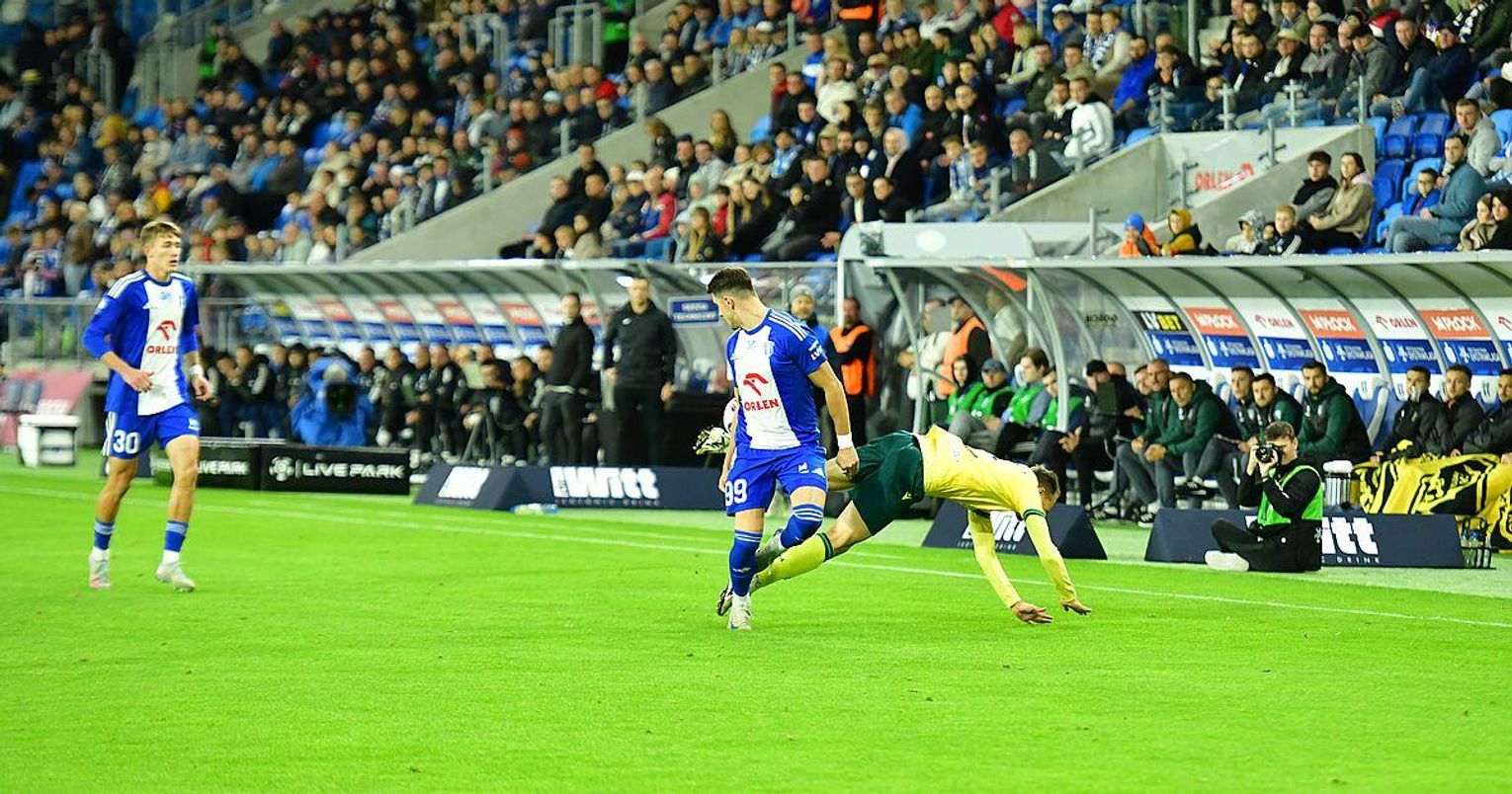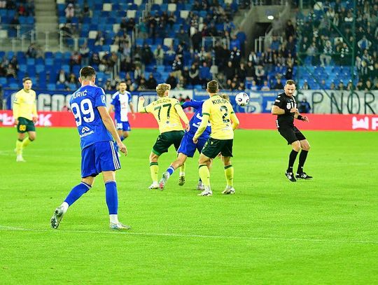 Dopiero w 38. minucie doczekaliśmy się emocji za sprawą Emana Markovica, który złożył się do strzału po podaniu Lukasa Klemenza, ale Rafała Leszczyńskiego zaskoczyć nie zdołał. Końcówka pierwszej połowy należała do gospodarzy. Najpierw Wiktor Nowak strzelił tak, że piłka minęła już bramkarz gości, ale nie wpadła do bramki, wybita przez Borję Galana.