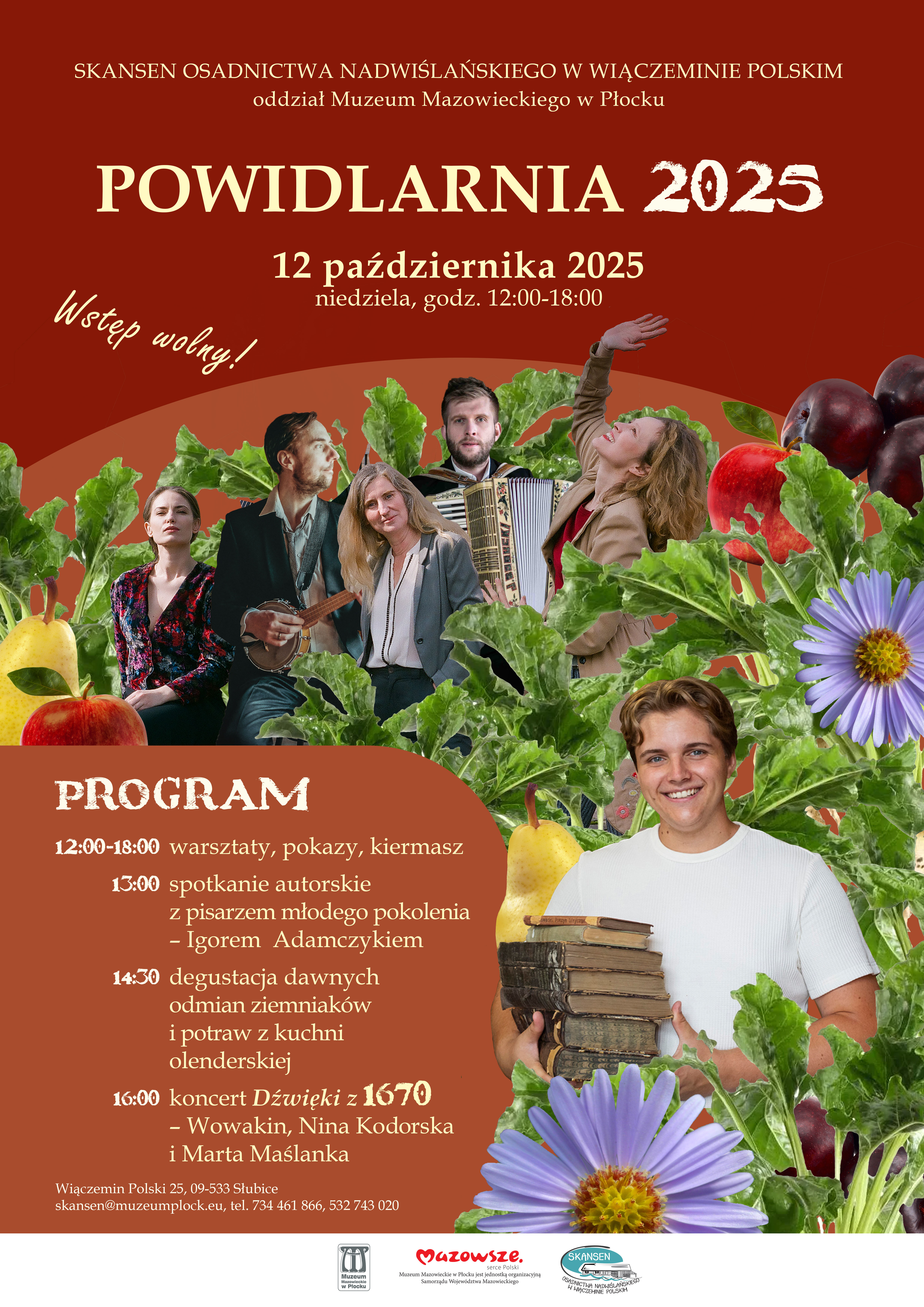 Rodzinne wydarzenie z warsztatami rzemiosła, kiermaszem lokalnych produktów i degustacją kuchni olenderskiej. W programie m.in. spotkanie z pisarzem Igorem Adamczykiem oraz koncert „Dźwięki z 1670” zespołu Wowakin, Niny Kodorskiej i Marty Maślanki. Wstęp bezpłatny.