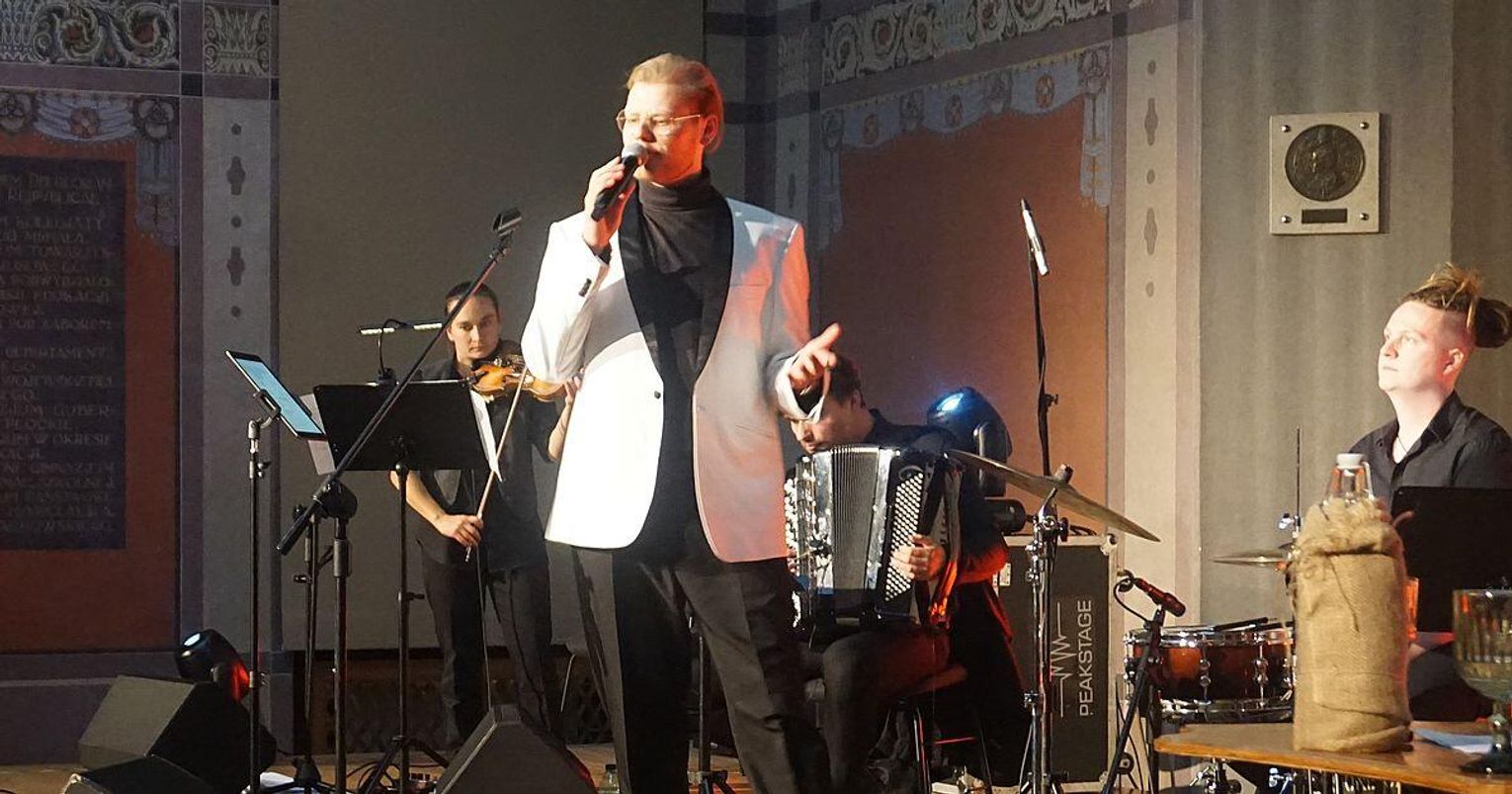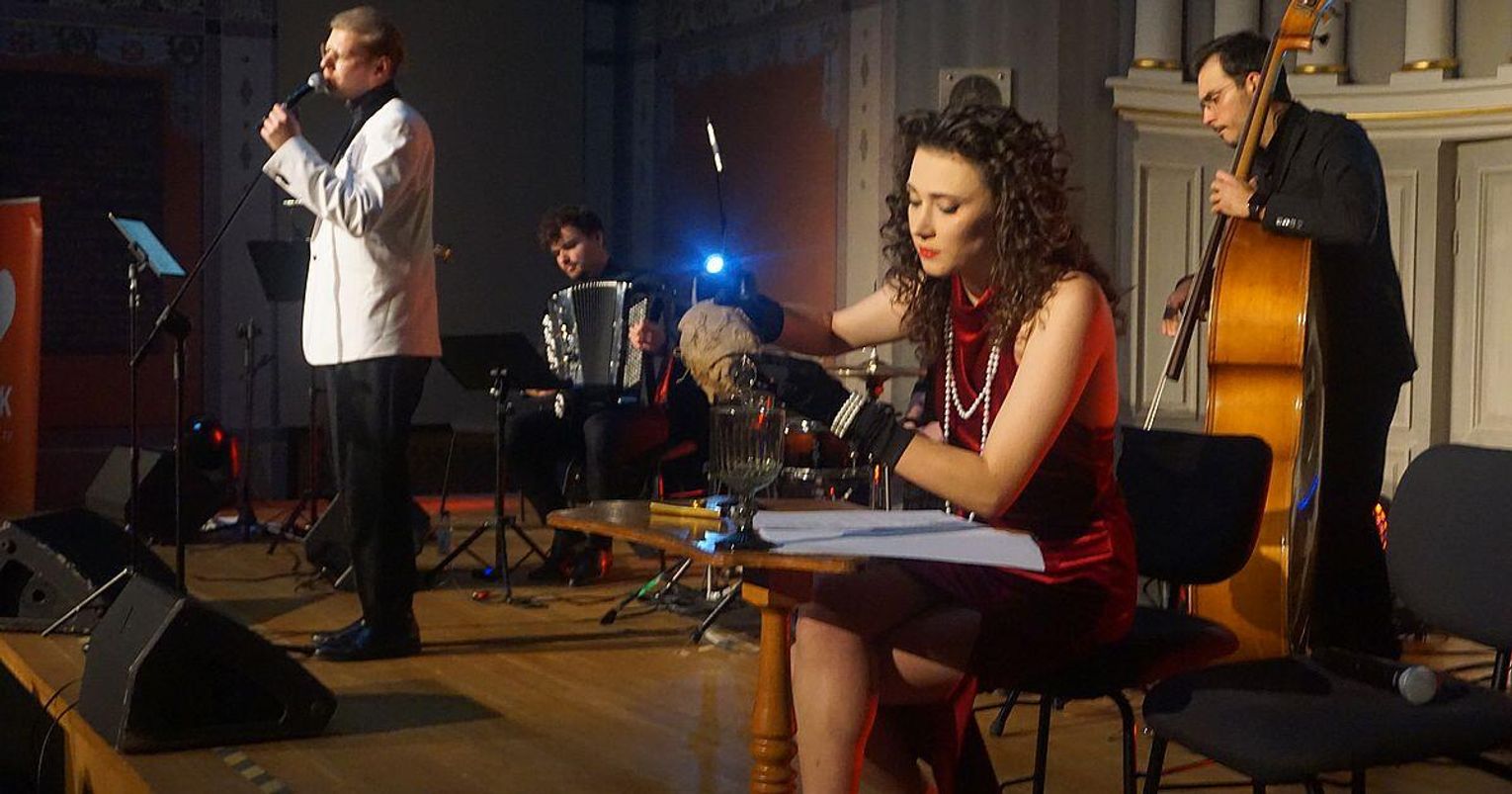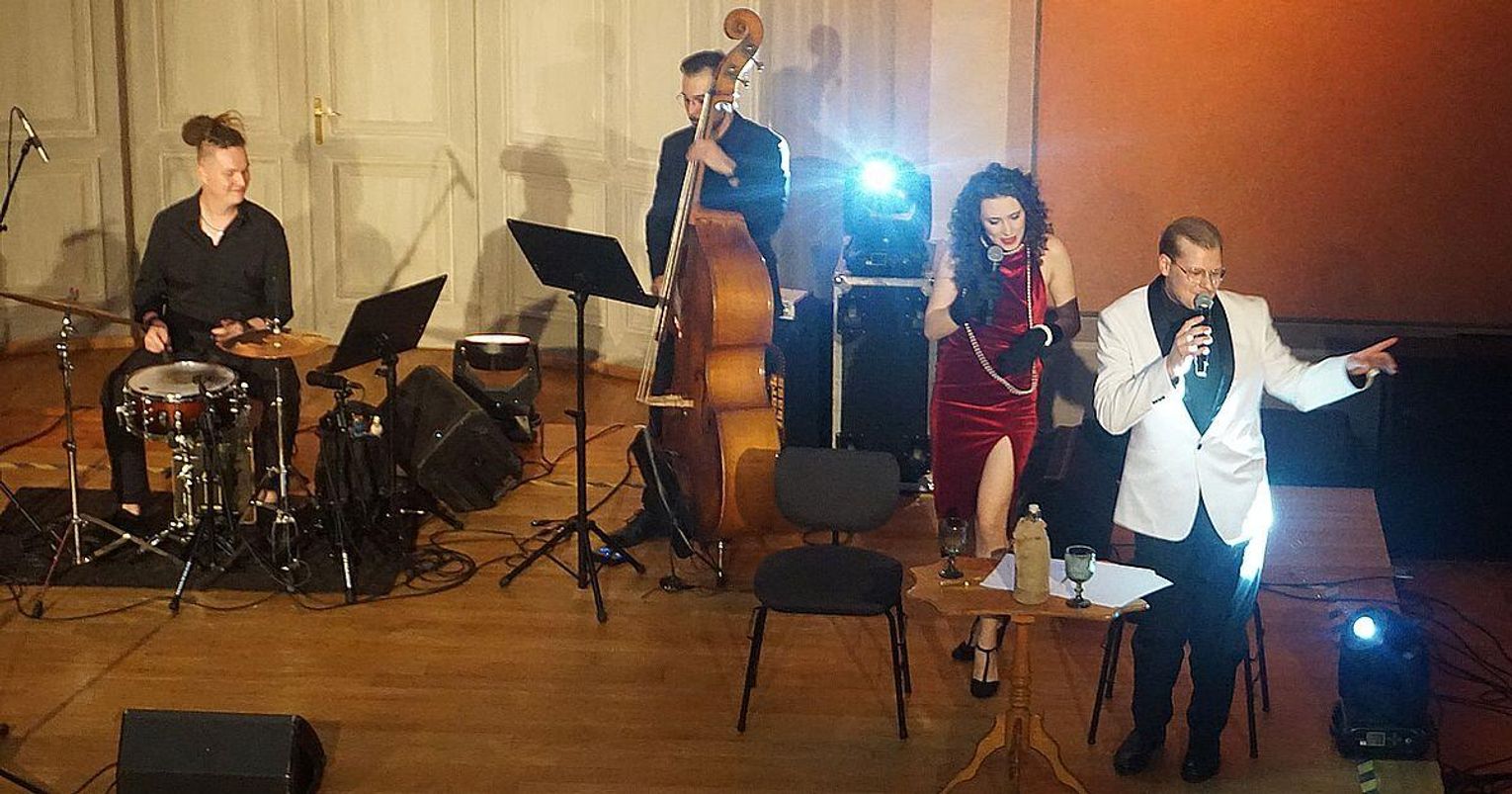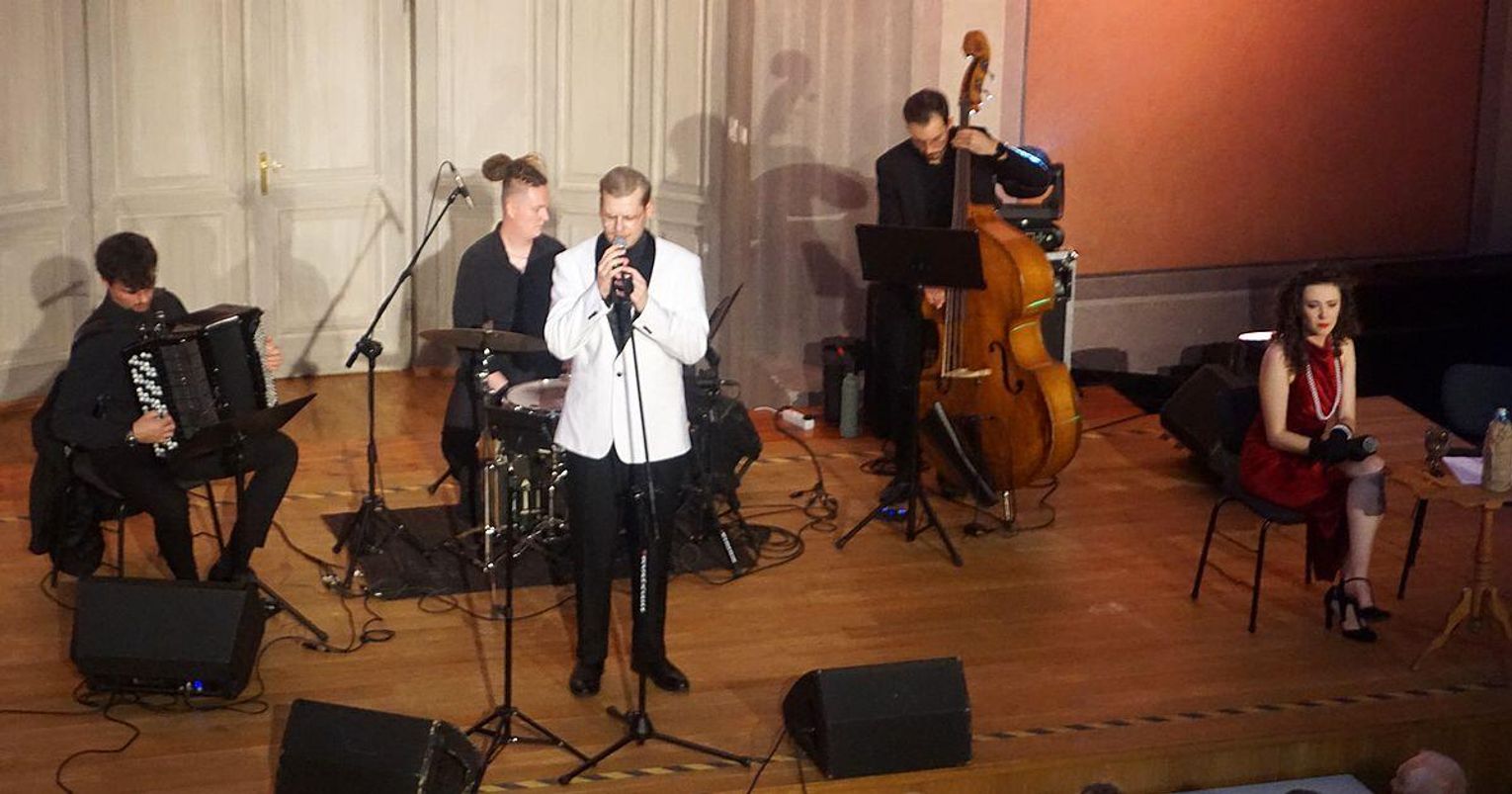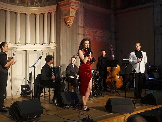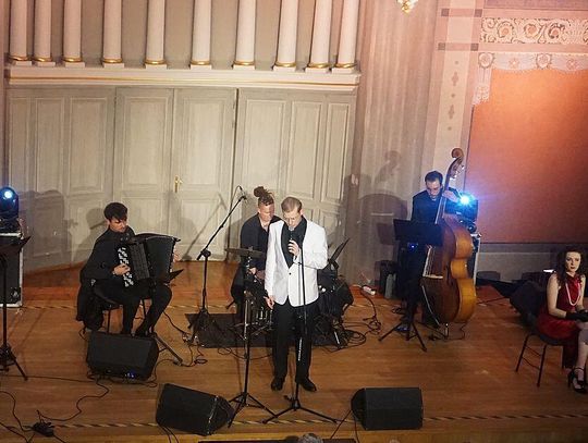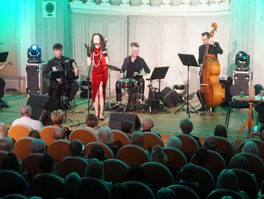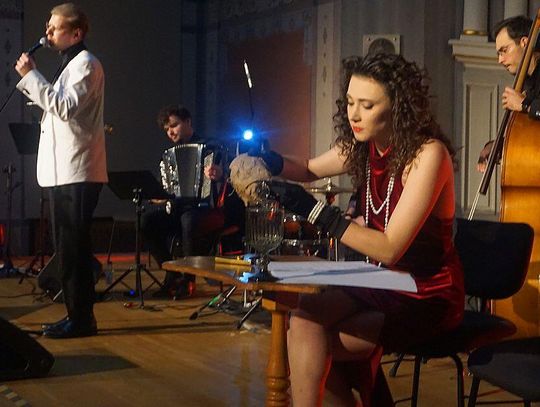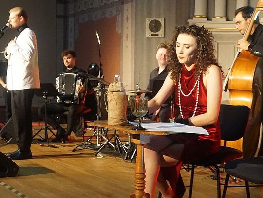 „W małym kinie nikt już dzisiaj nie gra na pianinie” usłyszeliśmy w jednej z otwierających program piosenek „Małe kino” śpiewanej przez Łukasza Bojaczuka. Nikt na pianinie nie grał również w sali, w której odbywał się niezwykły muzyczny spektakl. Za to Dawid Rydz udowodnił, że z akordeonem potrafi zrobić wszystko, a nawet jeszcze trochę. Nie tylko akompaniował wokalistom, nie unikał solówek, ale też tworzył tło do dialogów prowadzonych przez wokalistów, a nawet dźwiękowe komentarze – na przykład „śmiejąc się” przy pomocy swojego instrumentu (kto słucha czasami muzyki akordeonowej, ten wie, na czym polega „śmiech” akordeonu). Tuż obok Dawida siedział Michał Bator, który co jakiś czas dyskretnie używał swojej perkusji, jednak znacznie częściej korzystał z cayonu – bardziej subtelnego, klimatycznego, nastrojowego. Jednym słowem – idealnego dla większości prezentowanych piosenek. Kontrabas Tomka Szymańskiego i skrzypce Michaliny Putek dopełniały klimatu przedwojennych knajpek i kabaretów literackich połączonego z piosenkami pochodzącymi z czasów bardziej nam współczesnych, wśród których nie brakowało utworów z kultowego „Kabaretu Starszych Panów”.
