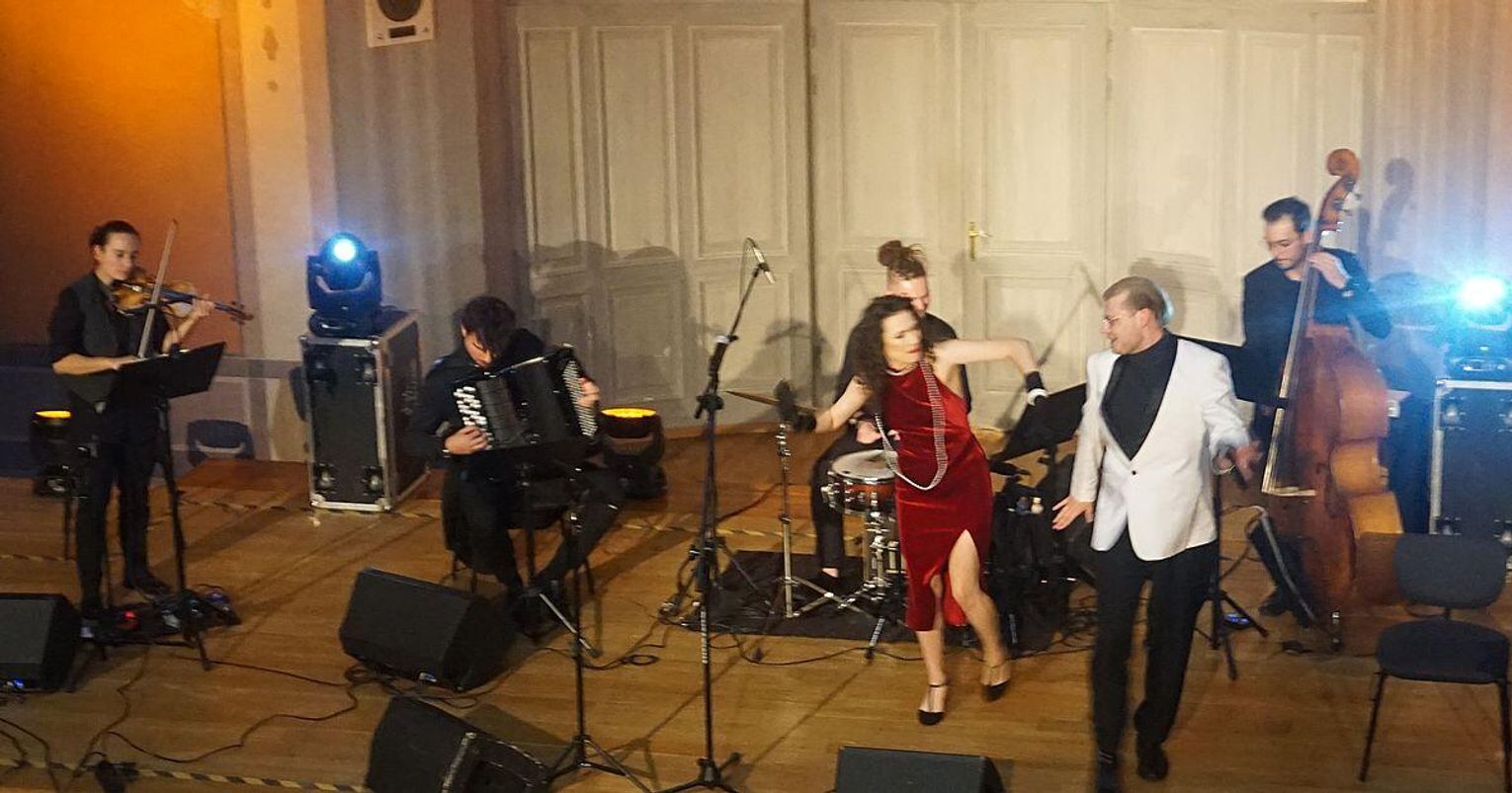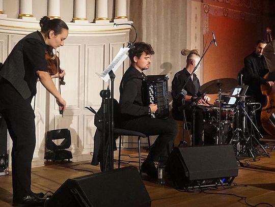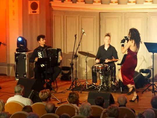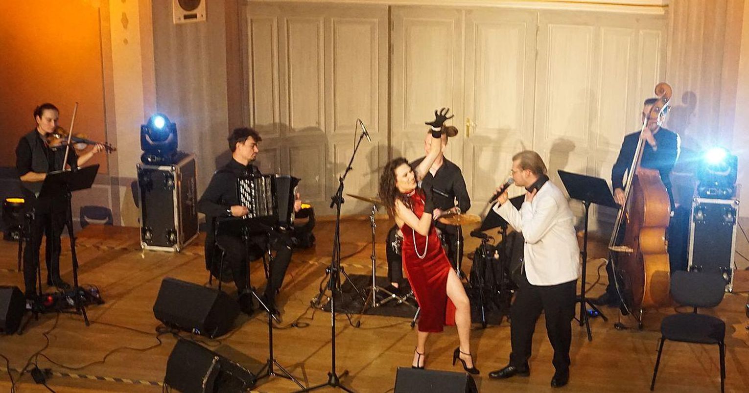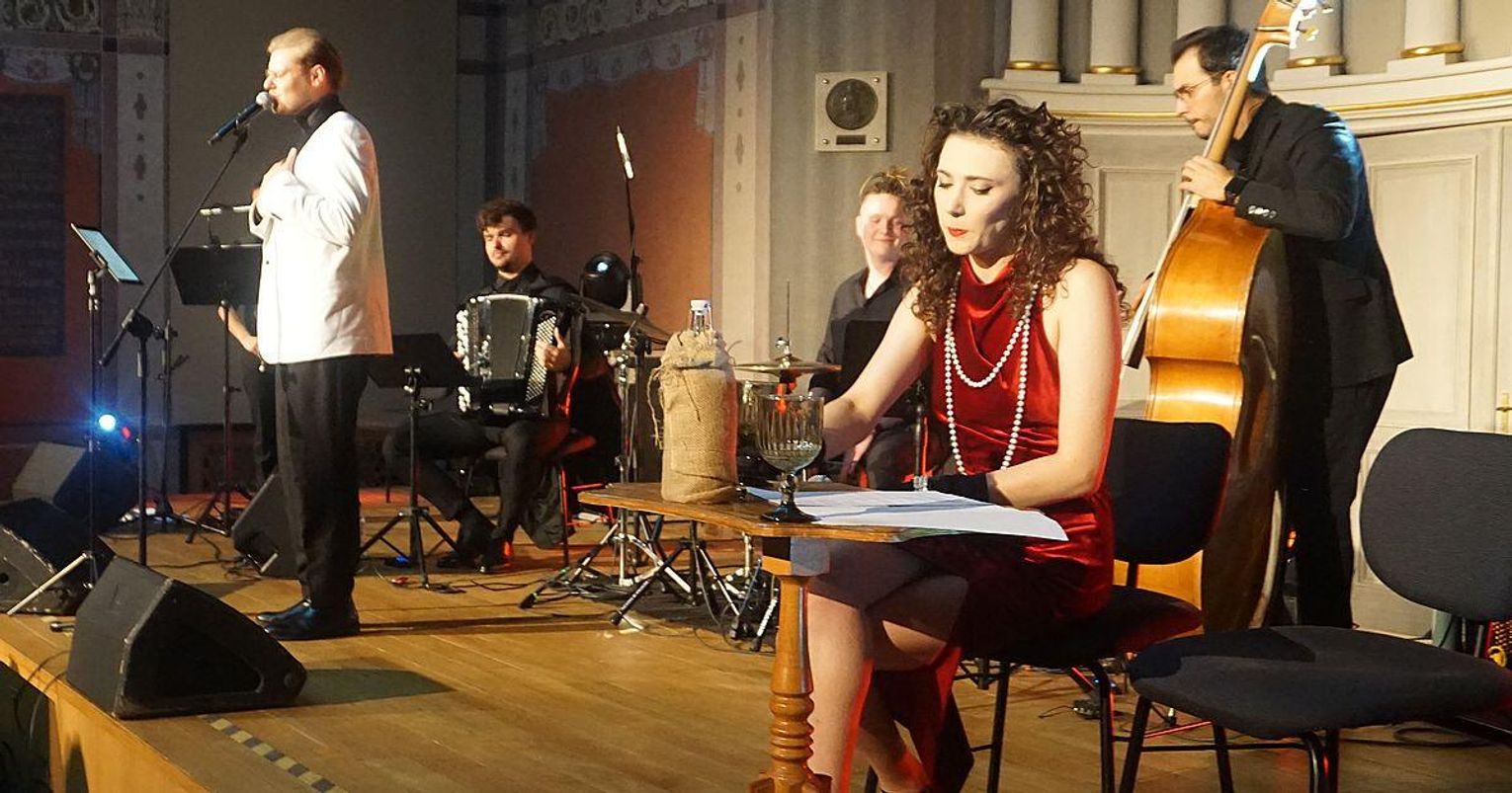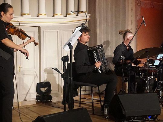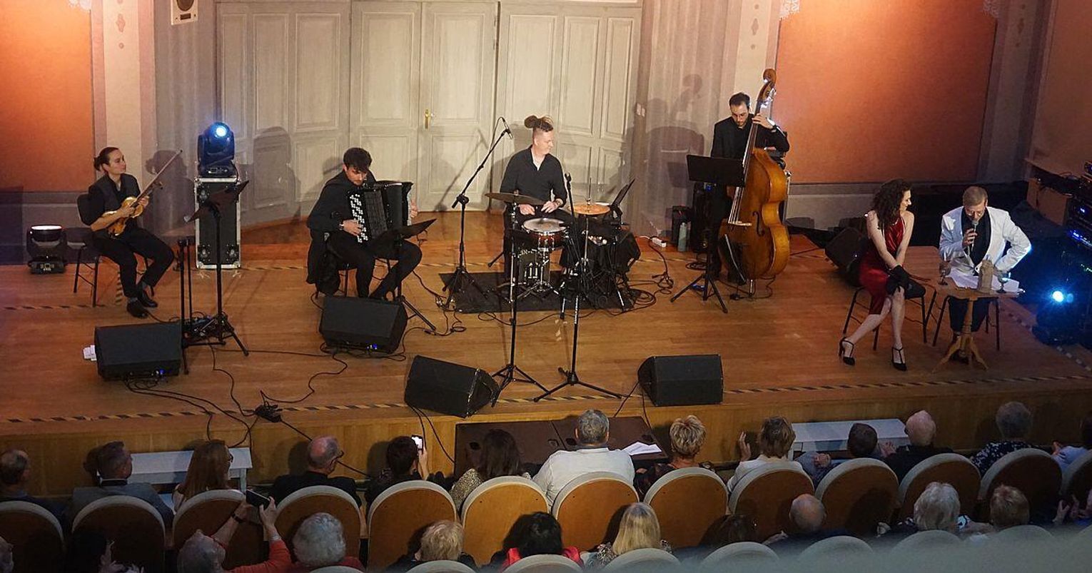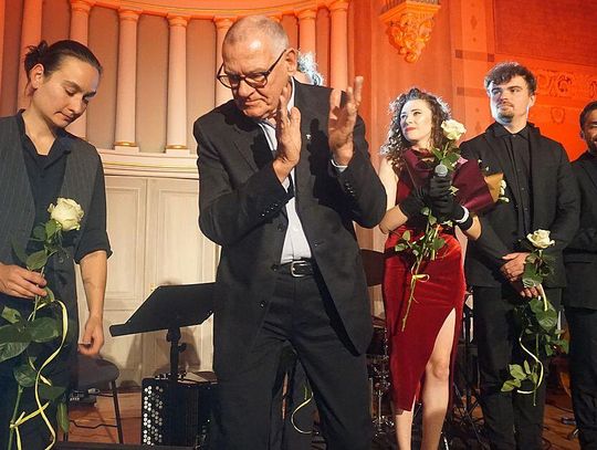„W małym kinie nikt już dzisiaj nie gra na pianinie” usłyszeliśmy w jednej z otwierających program piosenek „Małe kino” śpiewanej przez Łukasza Bojaczuka. Nikt na pianinie nie grał również w sali, w której odbywał się niezwykły muzyczny spektakl. Za to Dawid Rydz udowodnił, że z akordeonem potrafi zrobić wszystko, a nawet jeszcze trochę. Nie tylko akompaniował wokalistom, nie unikał solówek, ale też tworzył tło do dialogów prowadzonych przez wokalistów, a nawet dźwiękowe komentarze – na przykład „śmiejąc się” przy pomocy swojego instrumentu (kto słucha czasami muzyki akordeonowej, ten wie, na czym polega „śmiech” akordeonu). Tuż obok Dawida siedział Michał Bator, który co jakiś czas dyskretnie używał swojej perkusji, jednak znacznie częściej korzystał z cayonu – bardziej subtelnego, klimatycznego, nastrojowego. Jednym słowem – idealnego dla większości prezentowanych piosenek. Kontrabas Tomka Szymańskiego i skrzypce Michaliny Putek dopełniały klimatu przedwojennych knajpek i kabaretów literackich połączonego z piosenkami pochodzącymi z czasów bardziej nam współczesnych, wśród których nie brakowało utworów z kultowego „Kabaretu Starszych Panów”.