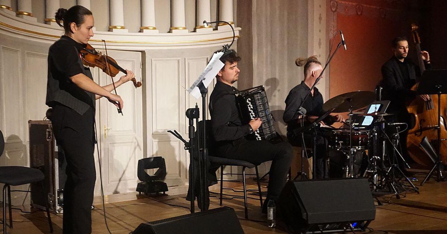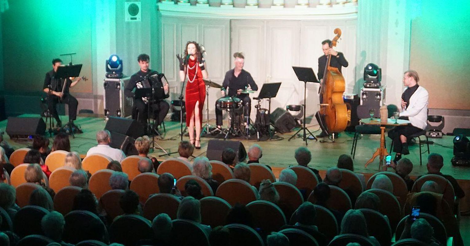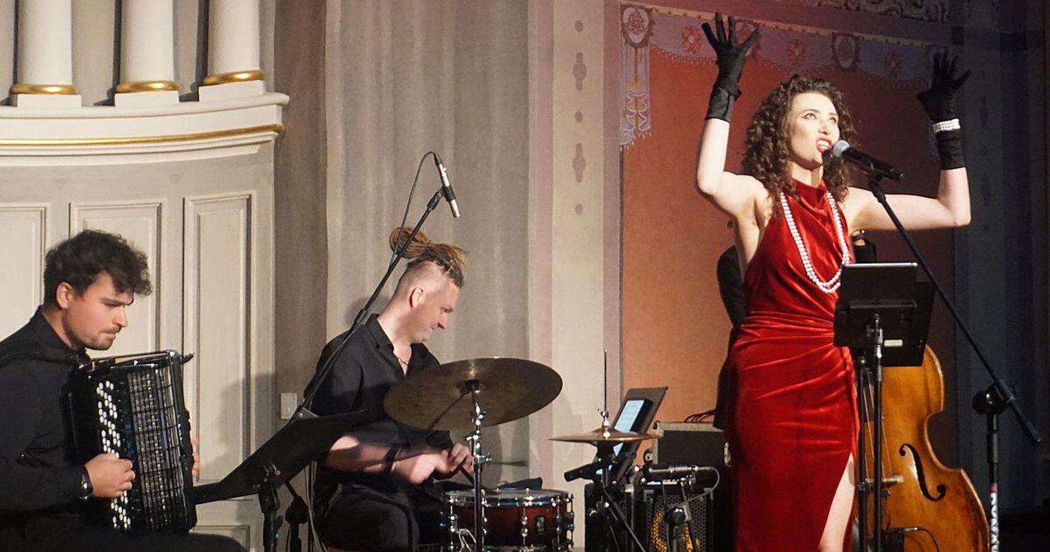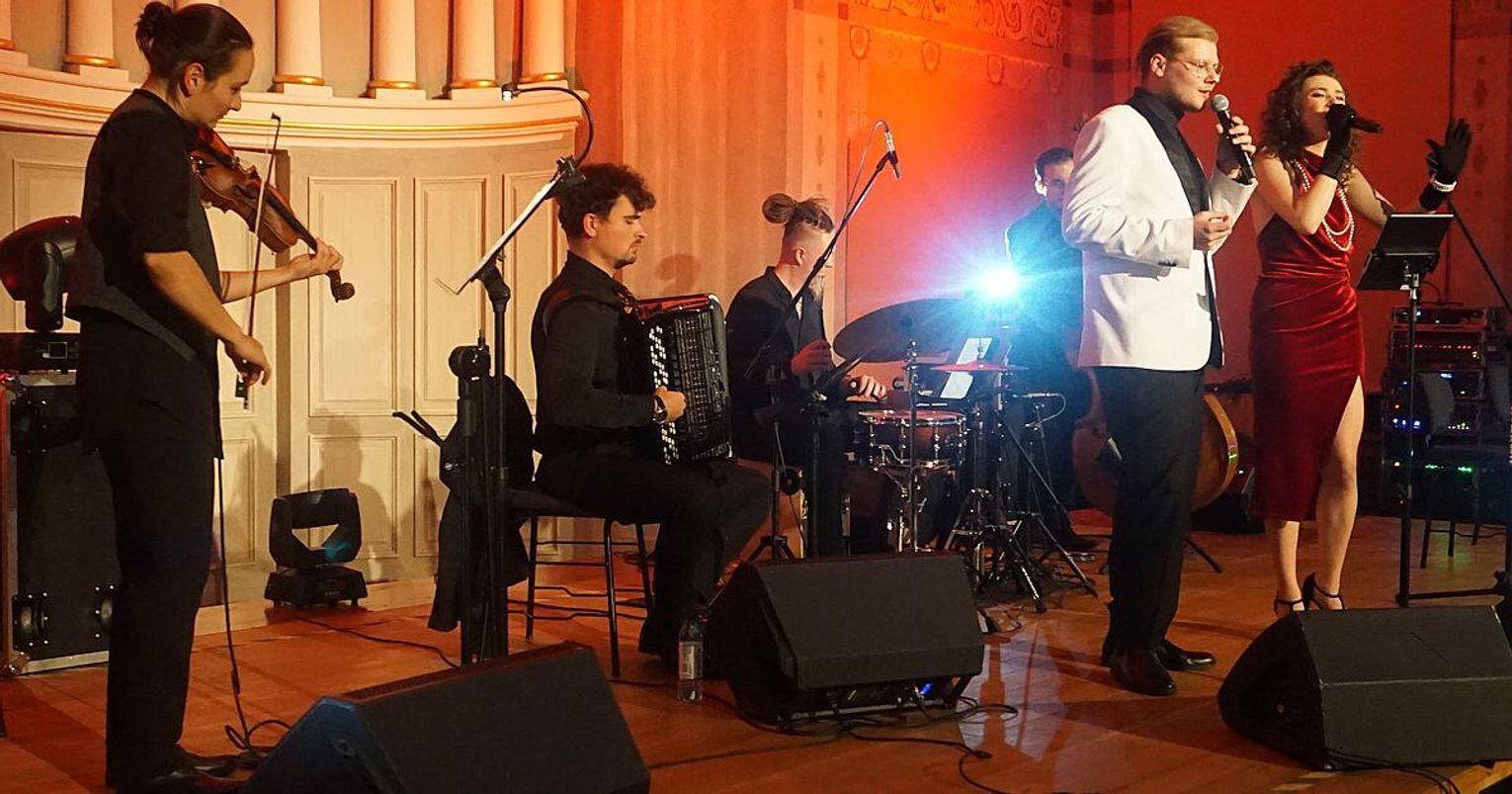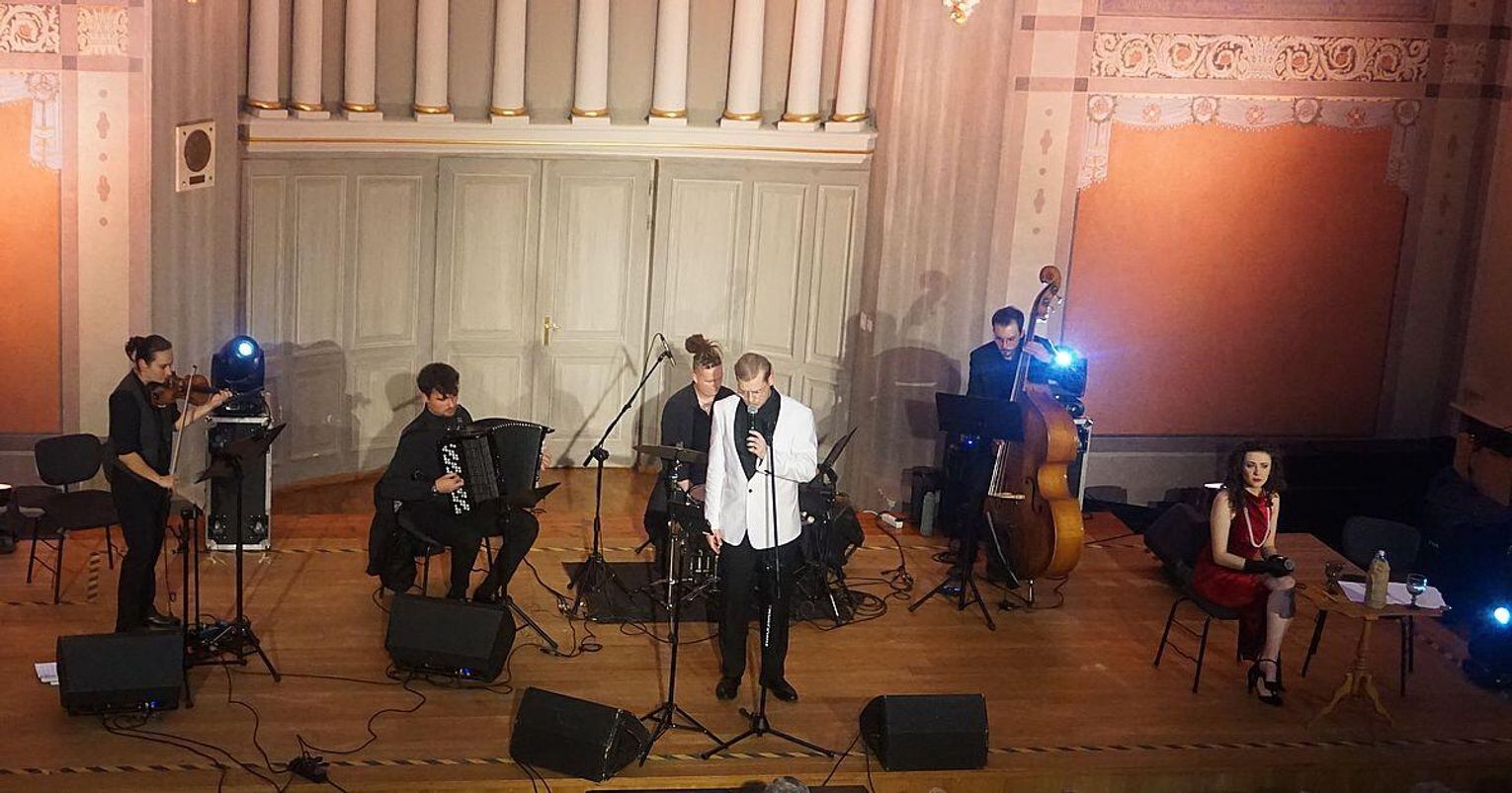 „W małym kinie nikt już dzisiaj nie gra na pianinie” usłyszeliśmy w jednej z otwierających program piosenek „Małe kino” śpiewanej przez Łukasza Bojaczuka. Nikt na pianinie nie grał również w sali, w której odbywał się niezwykły muzyczny spektakl. Za to Dawid Rydz udowodnił, że z akordeonem potrafi zrobić wszystko, a nawet jeszcze trochę. Nie tylko akompaniował wokalistom, nie unikał solówek, ale też tworzył tło do dialogów prowadzonych przez wokalistów, a nawet dźwiękowe komentarze – na przykład „śmiejąc się” przy pomocy swojego instrumentu (kto słucha czasami muzyki akordeonowej, ten wie, na czym polega „śmiech” akordeonu). Tuż obok Dawida siedział Michał Bator, który co jakiś czas dyskretnie używał swojej perkusji, jednak znacznie częściej korzystał z cayonu – bardziej subtelnego, klimatycznego, nastrojowego. Jednym słowem – idealnego dla większości prezentowanych piosenek. Kontrabas Tomka Szymańskiego i skrzypce Michaliny Putek dopełniały klimatu przedwojennych knajpek i kabaretów literackich połączonego z piosenkami pochodzącymi z czasów bardziej nam współczesnych, wśród których nie brakowało utworów z kultowego „Kabaretu Starszych Panów”.