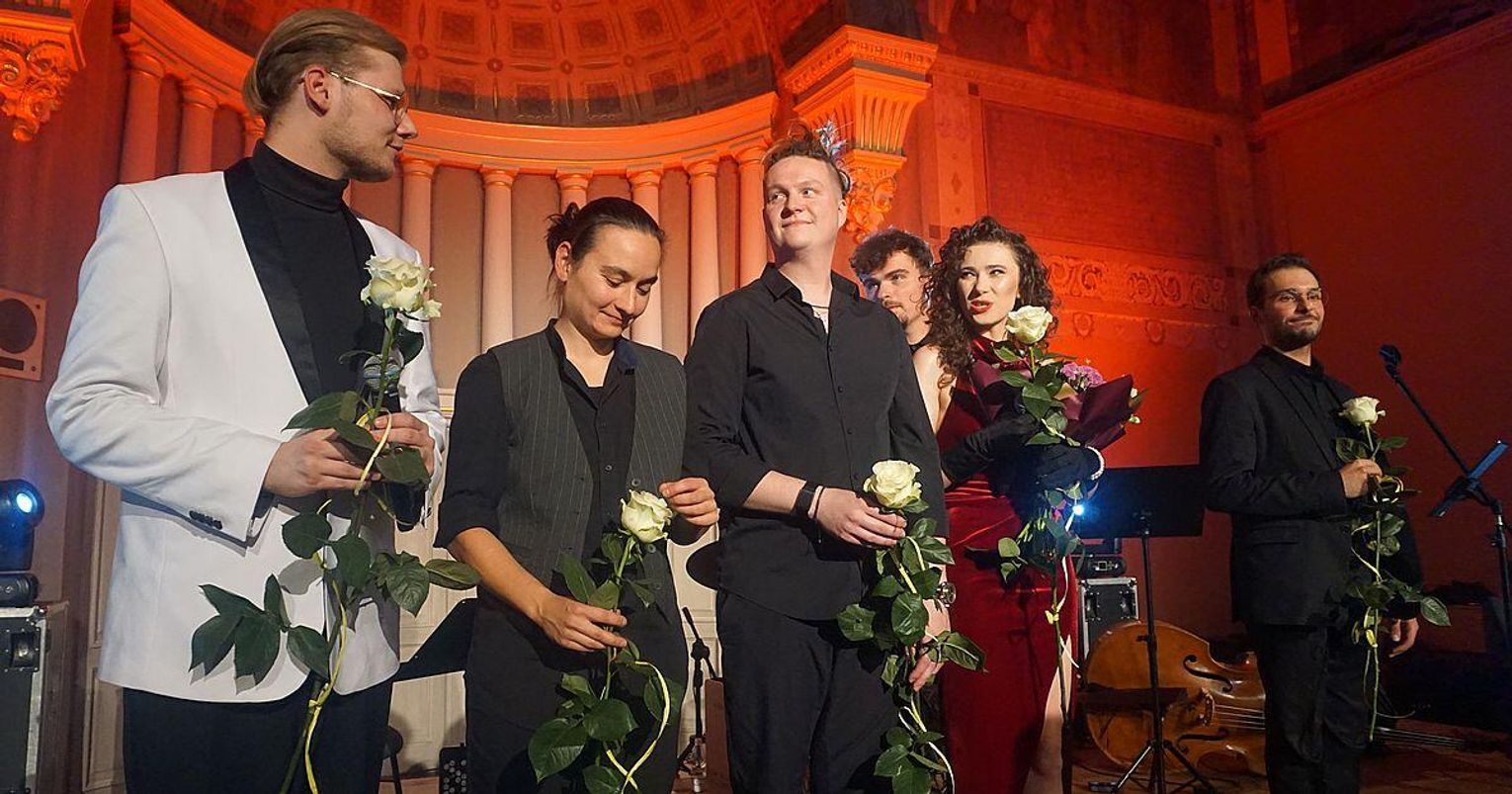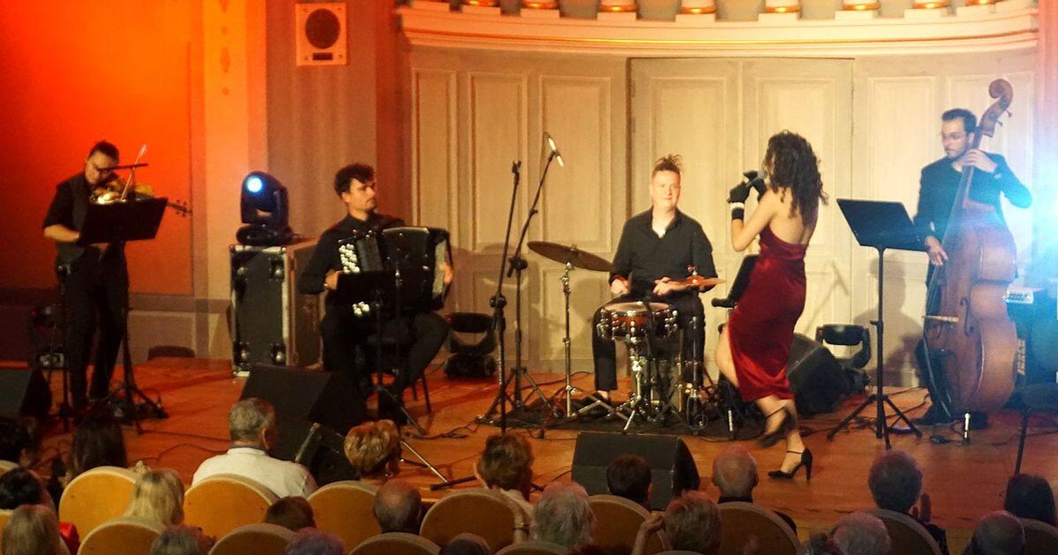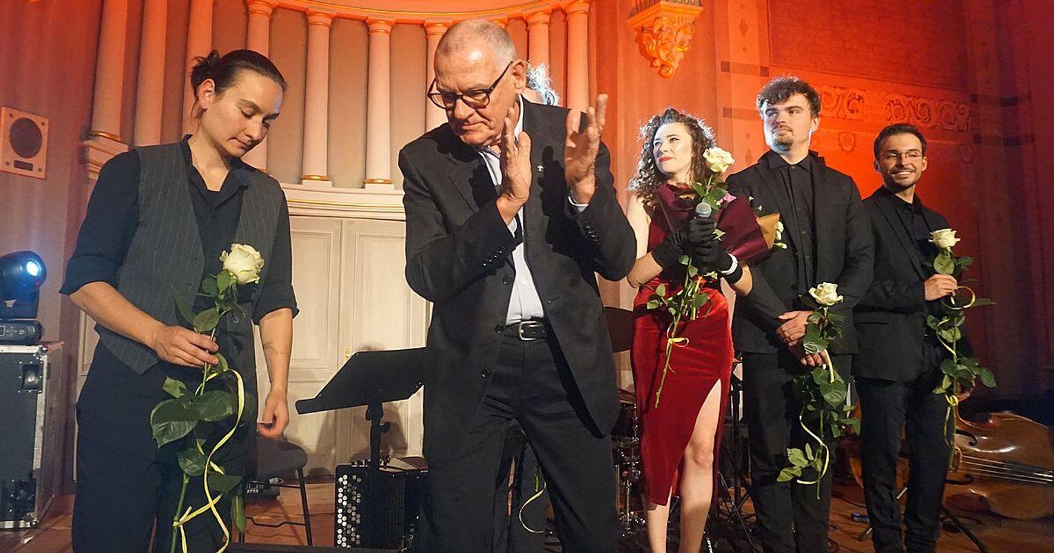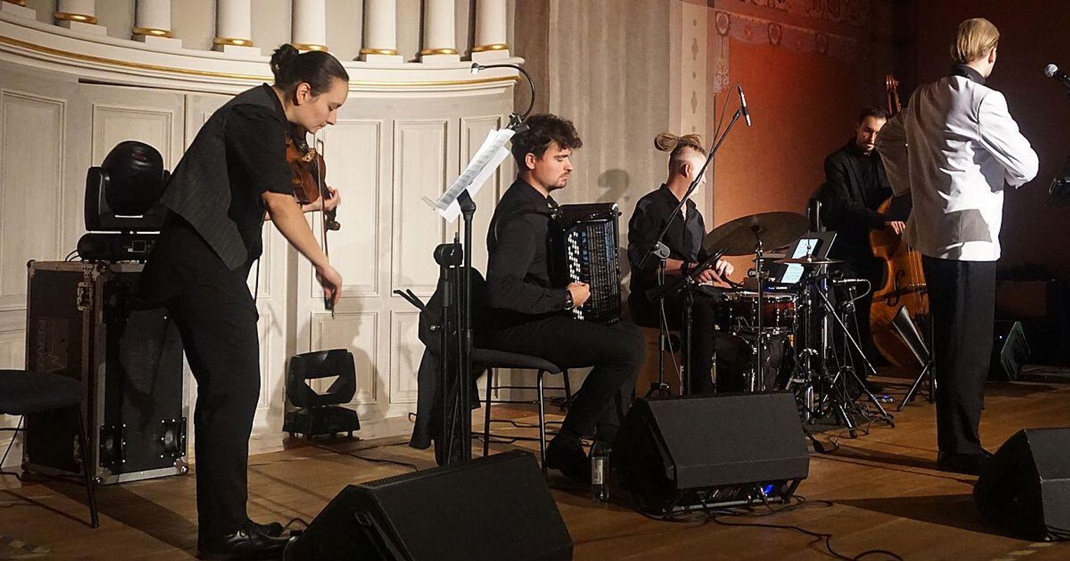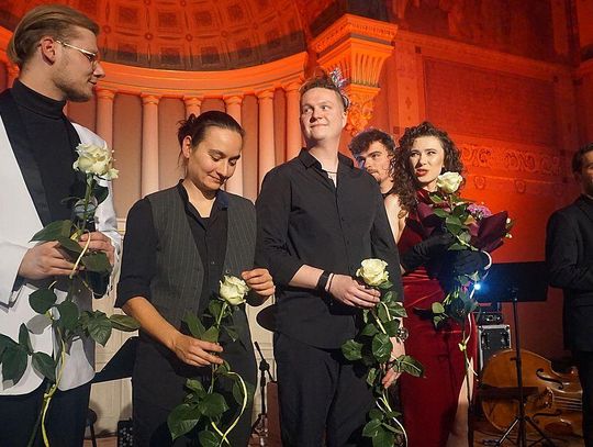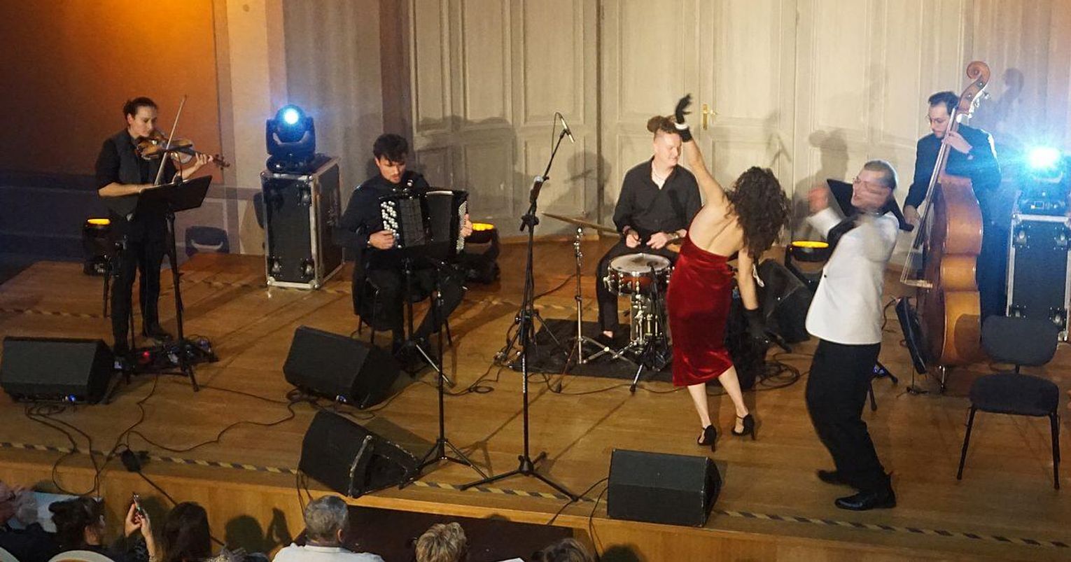 „W małym kinie nikt już dzisiaj nie gra na pianinie” usłyszeliśmy w jednej z otwierających program piosenek „Małe kino” śpiewanej przez Łukasza Bojaczuka. Nikt na pianinie nie grał również w sali, w której odbywał się niezwykły muzyczny spektakl. Za to Dawid Rydz udowodnił, że z akordeonem potrafi zrobić wszystko, a nawet jeszcze trochę. Nie tylko akompaniował wokalistom, nie unikał solówek, ale też tworzył tło do dialogów prowadzonych przez wokalistów, a nawet dźwiękowe komentarze – na przykład „śmiejąc się” przy pomocy swojego instrumentu (kto słucha czasami muzyki akordeonowej, ten wie, na czym polega „śmiech” akordeonu). Tuż obok Dawida siedział Michał Bator, który co jakiś czas dyskretnie używał swojej perkusji, jednak znacznie częściej korzystał z cayonu – bardziej subtelnego, klimatycznego, nastrojowego. Jednym słowem – idealnego dla większości prezentowanych piosenek. Kontrabas Tomka Szymańskiego i skrzypce Michaliny Putek dopełniały klimatu przedwojennych knajpek i kabaretów literackich połączonego z piosenkami pochodzącymi z czasów bardziej nam współczesnych, wśród których nie brakowało utworów z kultowego „Kabaretu Starszych Panów”.