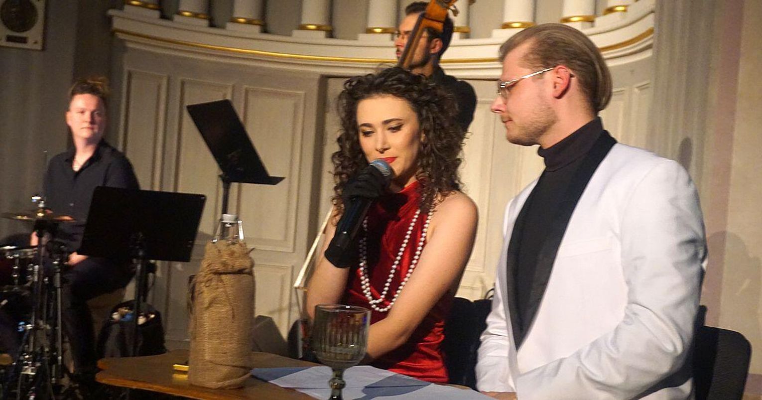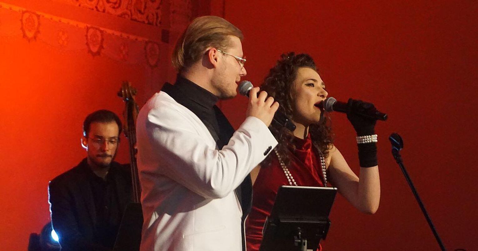 Aula im. Kajetana Morykoniego Liceum Ogólnokształcącego im. Marszałka Stanisława Małachowskiego wypełniła się nadkompletem publiczności, który z zapartym tchem śledził akcję premierowo prezentowanego widowiska „Miłość w rytmie retro”. Parze wokalistów – Klaudii Szmidt i Łukaszowi Bojaczukowi towarzyszyła formacja The Goaters, która zazwyczaj występuje jako trio, tym razem jednak poszerzona została o perkusję i perkusjonalia.