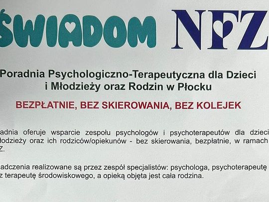 Poradnia Psychologiczno-Terapeutyczne dla Dzieci, Młodzieży i Rodzin „Świadom” zapewnia terapeutów środowiskowych i obejmuje opieką całe rodziny. Swoją ofertę kieruje do osób, które: