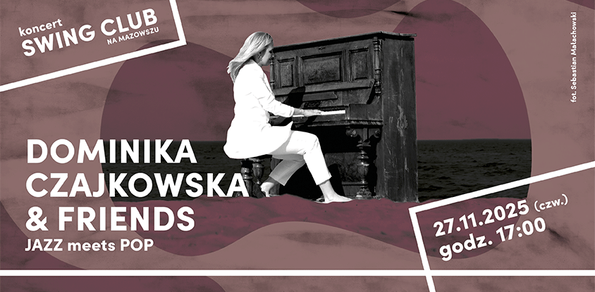 Na zakończenie jesiennej edycji cyklu „Swing Club na Mazowszu” wystąpi Dominika Czajkowska – wokalistka, pianistka i kompozytorka – z zespołem przyjaciół. Artyści zaprezentują autorskie kompozycje, filmowe inspiracje i jazzowe interpretacje hitów m.in. Beyoncé i Dua Lipy.