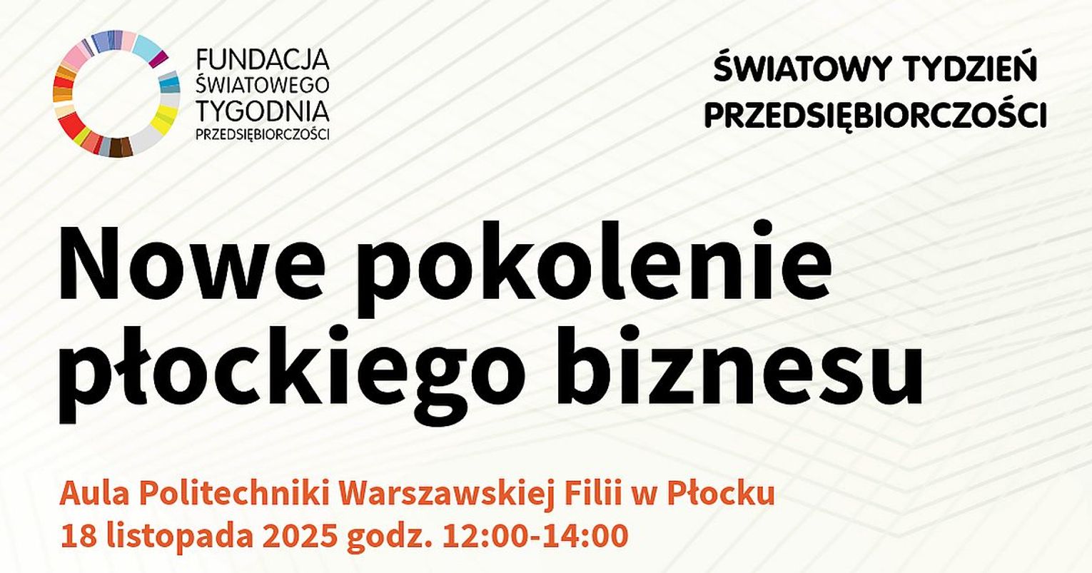 Kolegium Nauk Ekonomicznych i Społecznych płockiej filii Politechniki Warszawskiej, które jest organizatorem wydarzenia, na spotkanie „Nowe pokolenie płockiego biznesu” zaprasza we wtorek 18 listopada o godzinie 12.00 do Auli GG przy ul. Łukasiewicza 17.