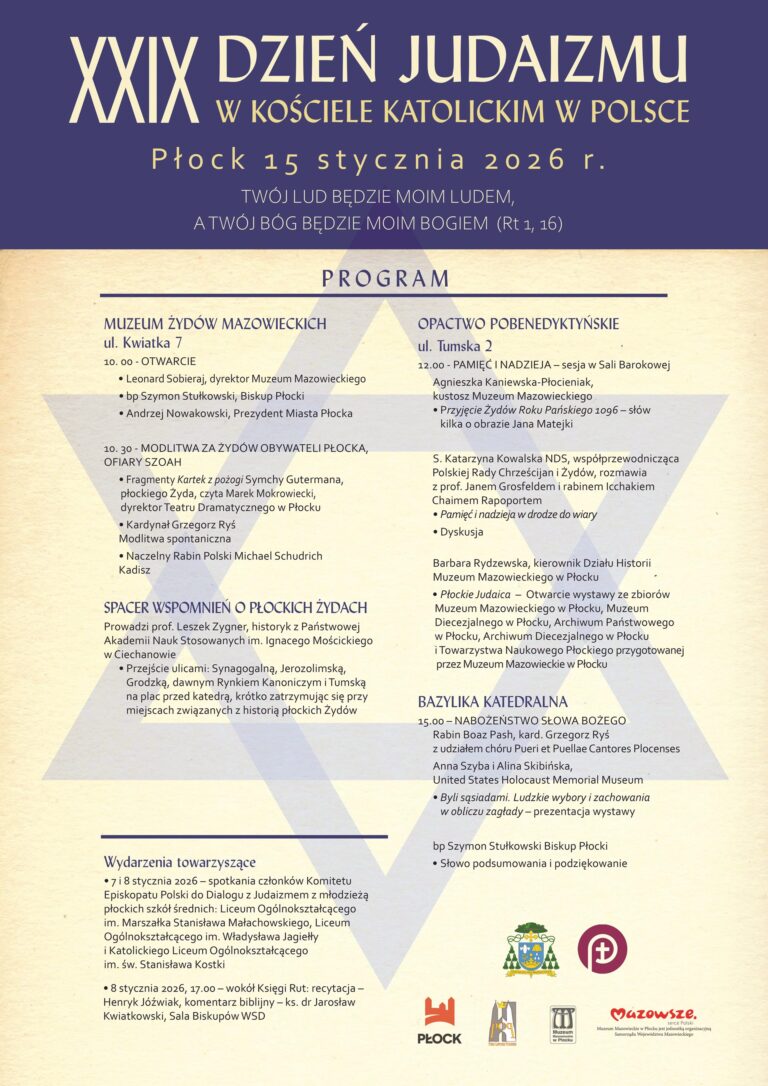 Zwieńczeniem dnia będzie zaplanowane na 15.00 nabożeństwo słowa Bożego w katedrze płockiej, które poprowadzą rabin Boaz Pash i kard. Grzegorz Ryś z czytaniami biblijnymi, także w języku hebrajskim.