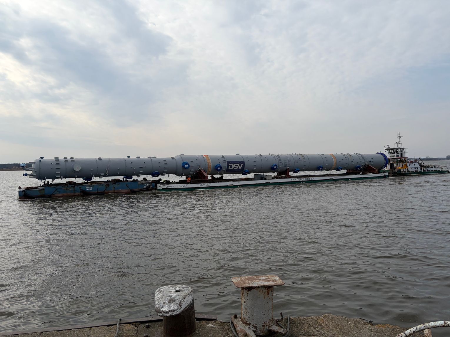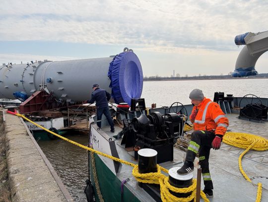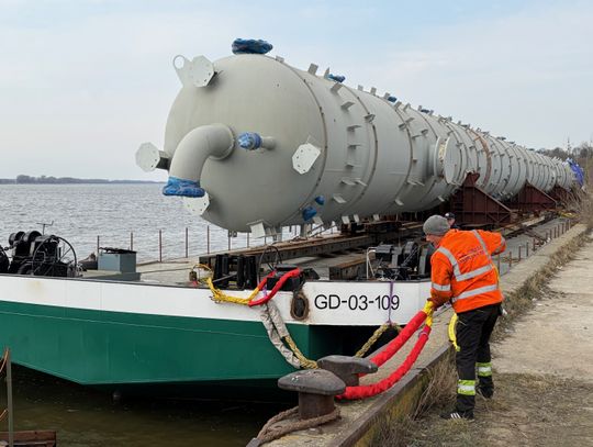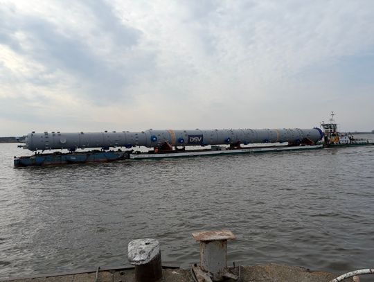Dwa ogromne elementy instalacji petrochemicznej ORLENU zakończyły wczoraj niezwykłą podróż Wisłą. Kolumny, które przypłynęły do portu rzecznego w Płocku, pokonały ponad 300 kilometrów z Portu Gdańsk. Ładunki wyprodukowano w Szanghaju w Chinach. Do Gdańska dotarły drogą morską na początku marca. Jedna z kolumn ma aż 89,5 metra długości i waży około 555 ton. Druga mierzy 68,5 metra i waży około 288 ton. To jedne z największych obiektów, jakie kiedykolwiek transportowano w Polsce. Za całą operację odpowiadał polski zespół firmy DSV – Global Transport and Logistics. Specjaliści zaplanowali każdy etap transportu, od odbioru w Chinach, przez rejs morski, aż po transport rzeczny Wisłą do Płocka.
