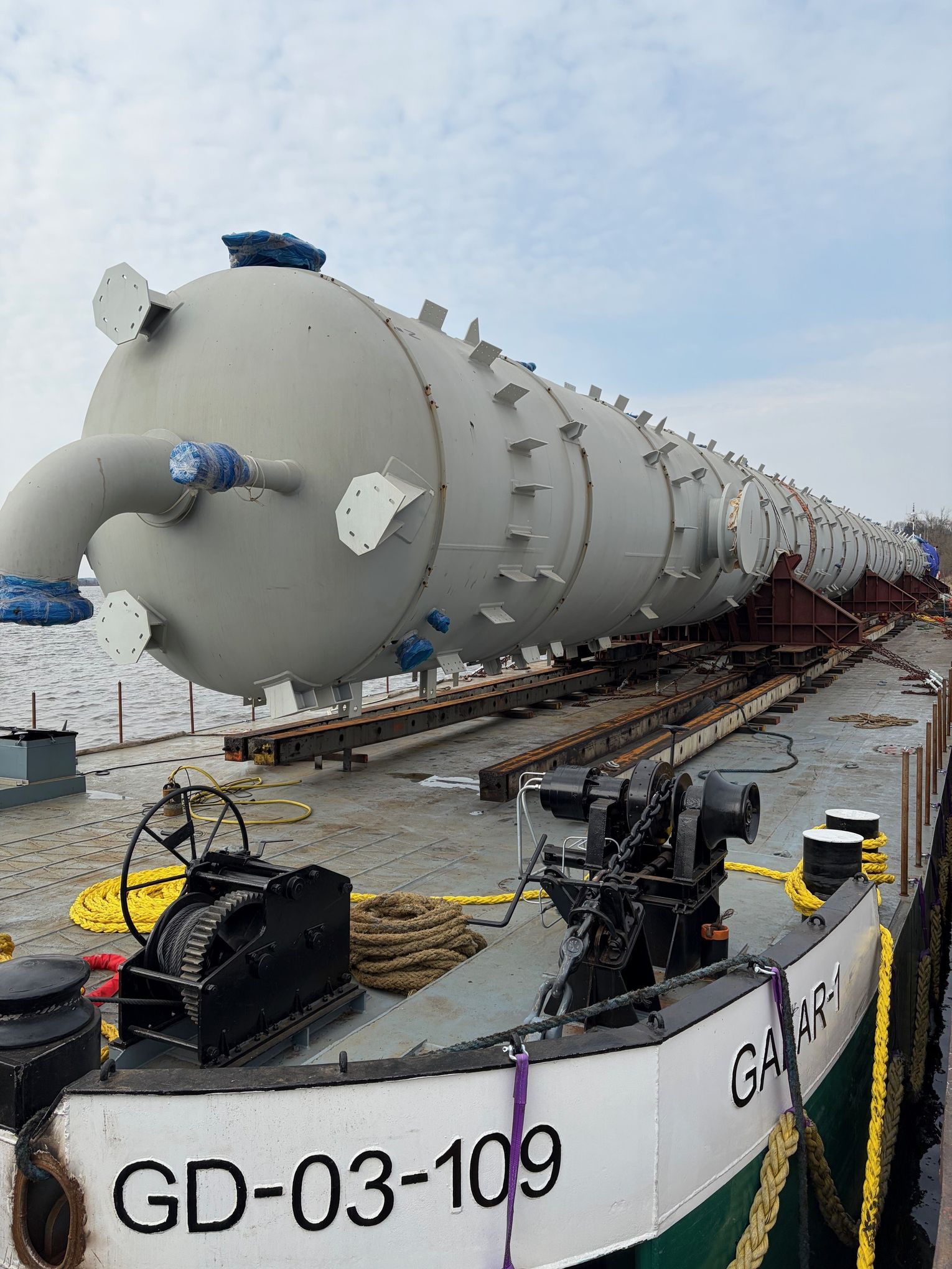 Po dopłynięciu do Płocka rozpocznie się kolejny etap operacji. Kolumny zostaną rozładowane przy użyciu siłowników hydraulicznych. Następnie trafią na specjalne platformy transportowe SPMT i drogą lądową pojadą na teren inwestycji petrochemicznej ORLENU.