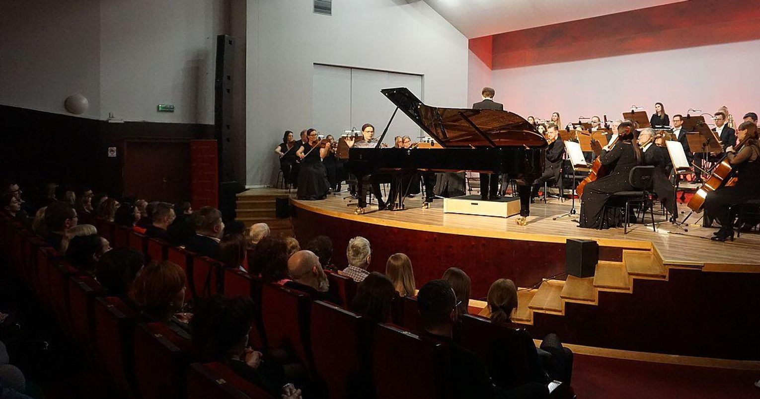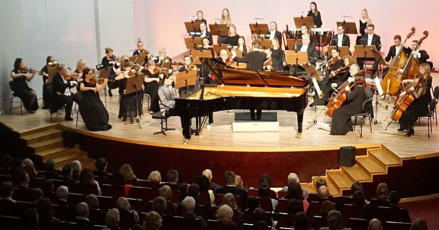 Głównym bohaterem wieczoru był Fryderyk Chopin, którego Koncert f-moll został zjawiskowo zagrany przez młodego pianistę, niedawnego uczestnika Konkursu Chopinowskiego, doskonale wyczuwającego każdy muzyczny niuans młodzieńczej kompozycji naszego znakomitego muzyka.