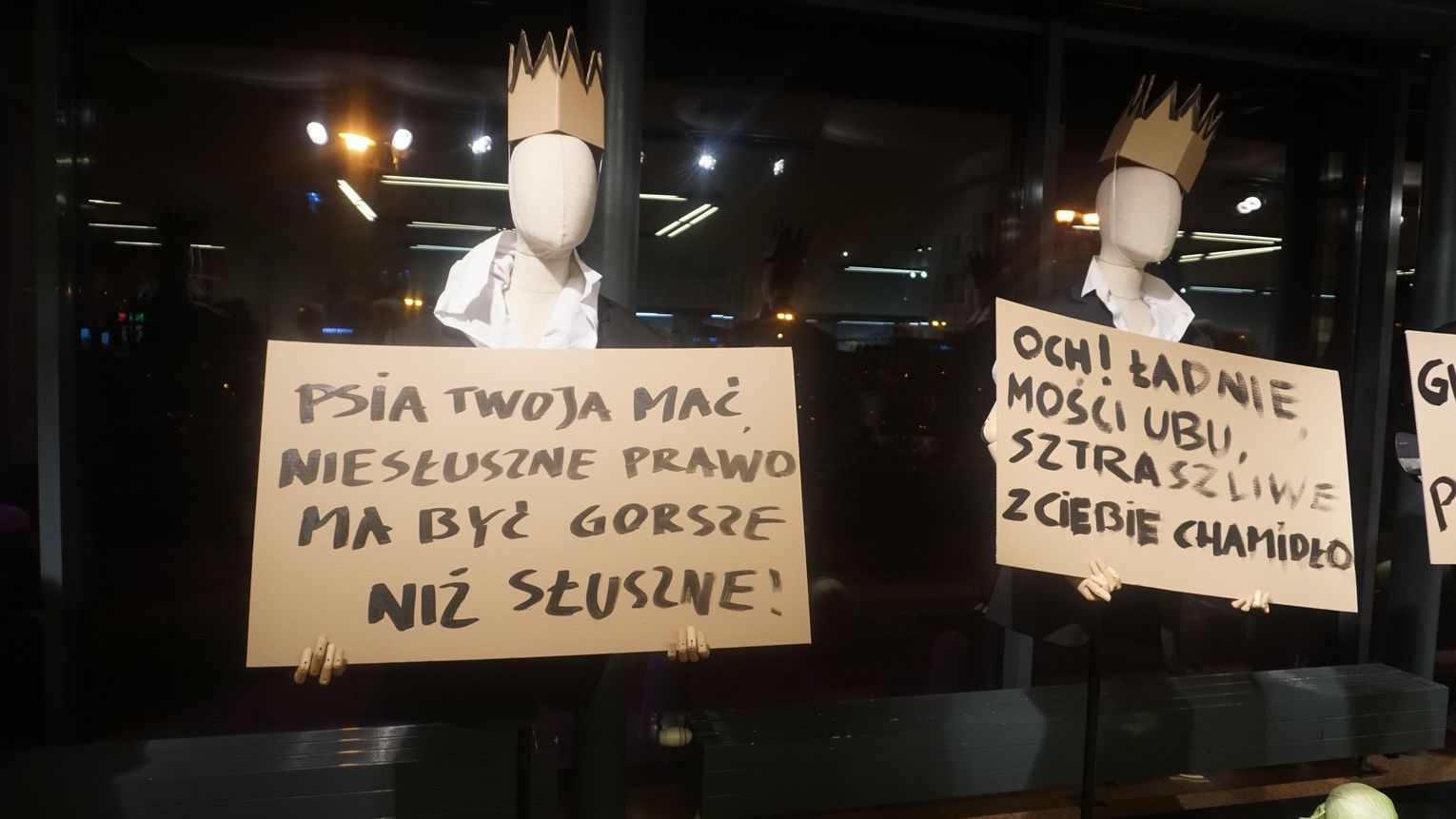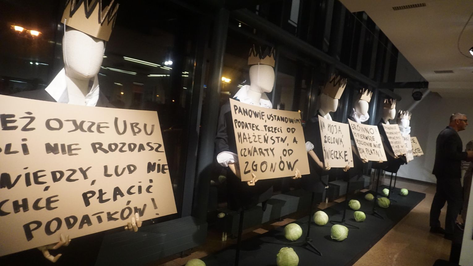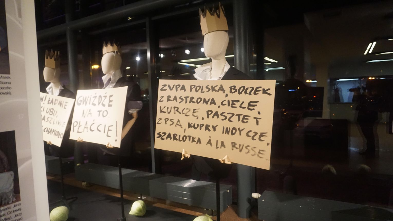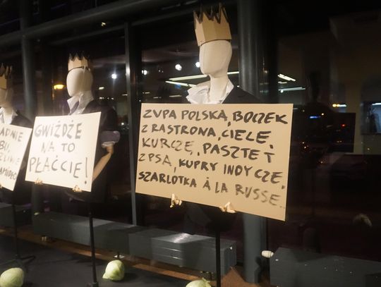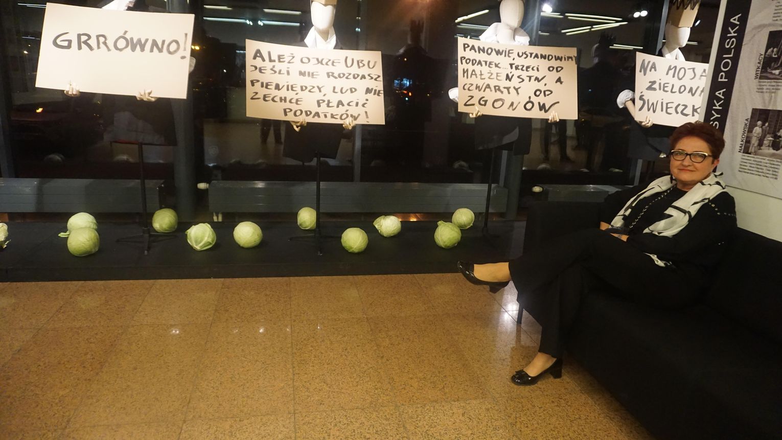 Opowieść o brutalnej ludzkiej zachłanności przesycona jest gorzką ironią. Para głównych postaci dramatu czyli Ubu i Ubica za wszelką cenę dążą do zdobycia władzy. Przez pryzmat ich postaci oglądamy, jak współczesny totalitaryzm degraduje porządek świata. Godna uwagi jest niesamowita scenografia Krzysztofa Małachowskiego (który stworzył również instalację ulokowaną w dolnym foyer) oraz muzyka Krzysztofa Misiaka.