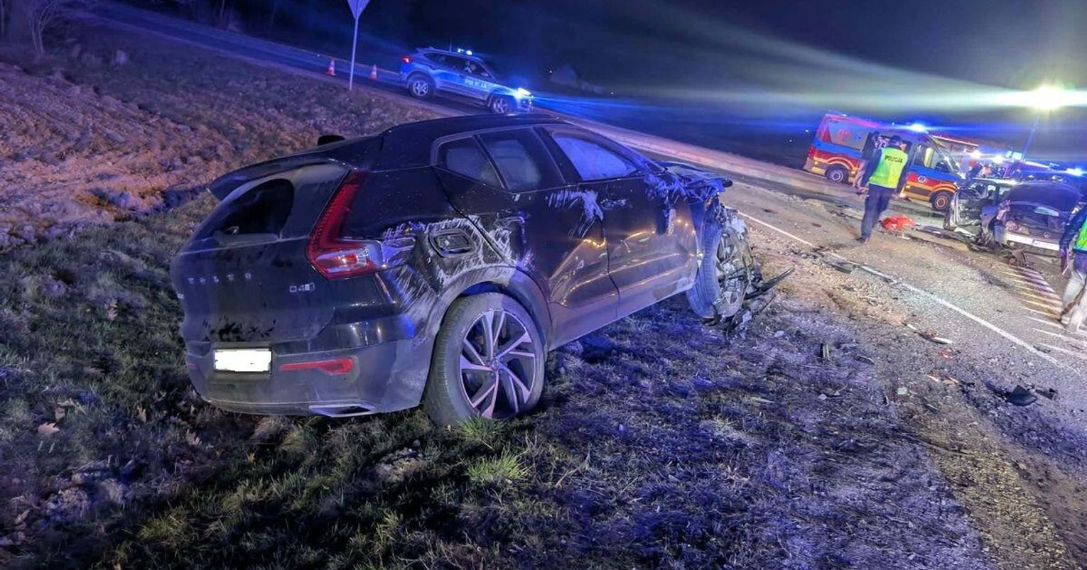 25-letni pasażer Volskvagena, który w wyniku zdarzenia doznał ciężkich obrażeń ciała, został przetransportowany do szpitala śmigłowcem Lotniczego Pogotowia Ratunkowego. W szpitalu znalazła się również 44-letnia pasażerka Volvo. Kierowcy byli trzeźwi.