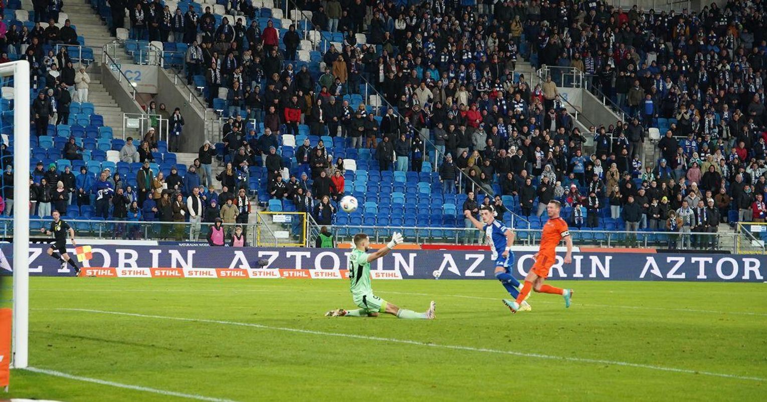 Miejscowi mieli delikatną przewagę, która nie przekładała się jednak na zdobycze bramkowe. Bliski wpisania na listę strzelców był Nemanja Mijusković, na szczęście po jego główce piłka przeleciała obok słupka… własnej bramki. Swoje szanse zmarnowali Marcus Fassbender i Dominik Hilbrycht. Nafciarze w tym czasie odpowiedzieli akcją, która zakończyła się strzałem Marcusa Haglinda-Sangre zza pola karnego. Zbyt słabym jednak, aby zaskoczyć bramkarza miejscowych.